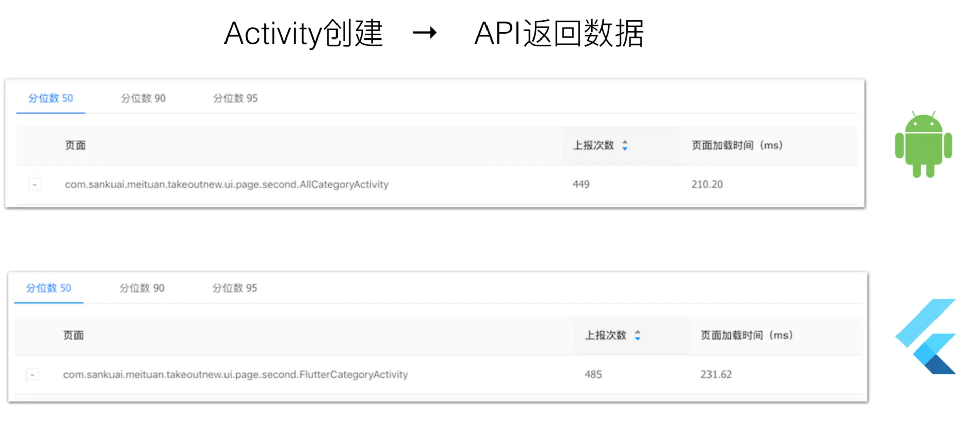 统计了400+次的数据,原生平均加载时间为210.20ms,flutter为231.62ms。可以看到flutter的性能几乎和原生开发时一致。
