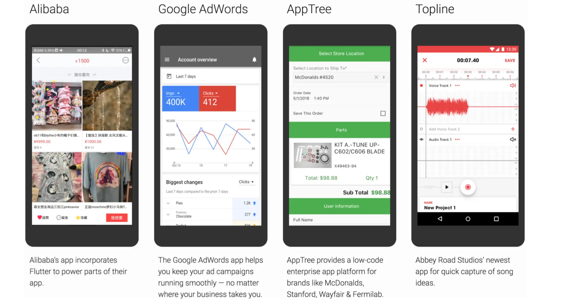 flutter正在被越来越多的大厂应用的项目开发中,包括但不限于阿里巴巴,腾讯,美团,谷歌等。比如阿里巴巴有多款移动应用已经上线 Flutter 版本。