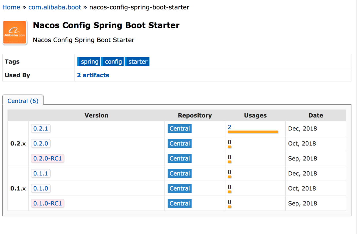 注意:版本 0.2.x.RELEASE对应的是 Spring Boot 2.x 版本,版本 0.1.x.RELEASE 对应的是 Spring Boot 1.x 版本。