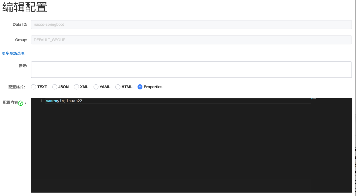Data ID:Nacos 中的某个配置集的 ID。配置集 ID 是组织划分配置的维度之一。Data ID 通常用于组织划分系统的配置集。一个系统或者应用可以包含多个配置集,每个配置集都可以被一个有意义的名称标识。Data ID 通常采用类 Java 包(如 com.taobao.tc.refund.log.level)的命名规则保证全局唯一性。此命名规则非强制。