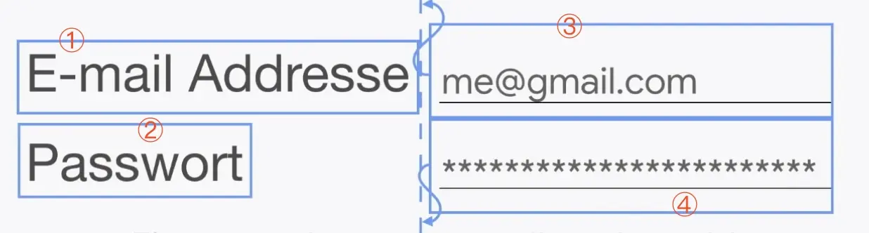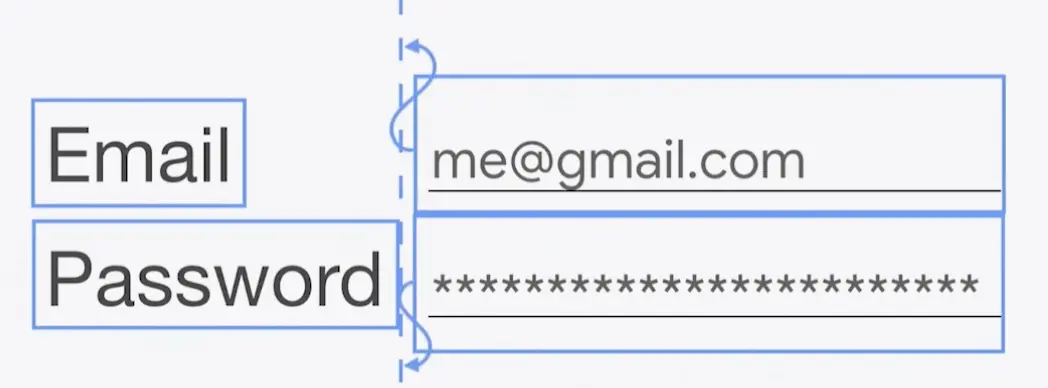 来看一个场景,下面是一个表单,Email 和 Password 左对齐 中间的虚线为 GuideLine,具体字段都和GuideLine左对齐。