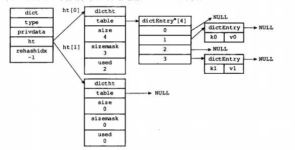 dictht ht[2]; /* 哈希表 */