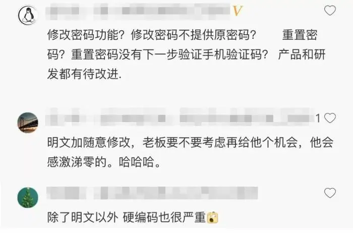 如果是程序大神,可以在一堆乱码中很快分析出是谁写的,有什么漏洞,网上引起广泛讨论的是一组很随意的乱码,反正不是专业人士完全看不懂是什么意思,改一个接口的密码用上了一堆字母加符号还有中文,网友们纷纷评论称,这属于硬编码,而且是随意的更改密码还加了明文,是这个接口最大的毛病,老板生气是肯定的。这样做出来的产品也是有问题的,客户根本就不会满意,很可能是刚刚进入社会的新人。