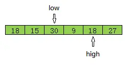 low和high指向同一个位置,