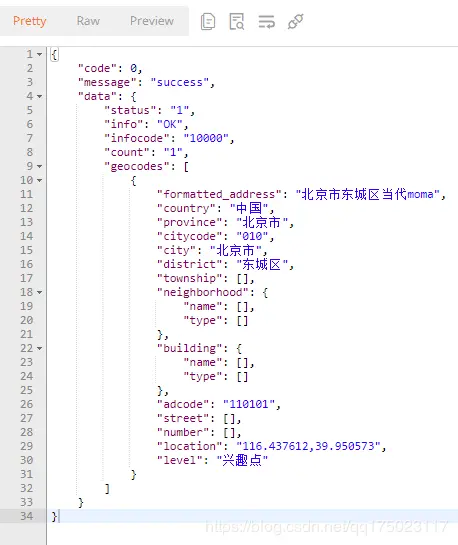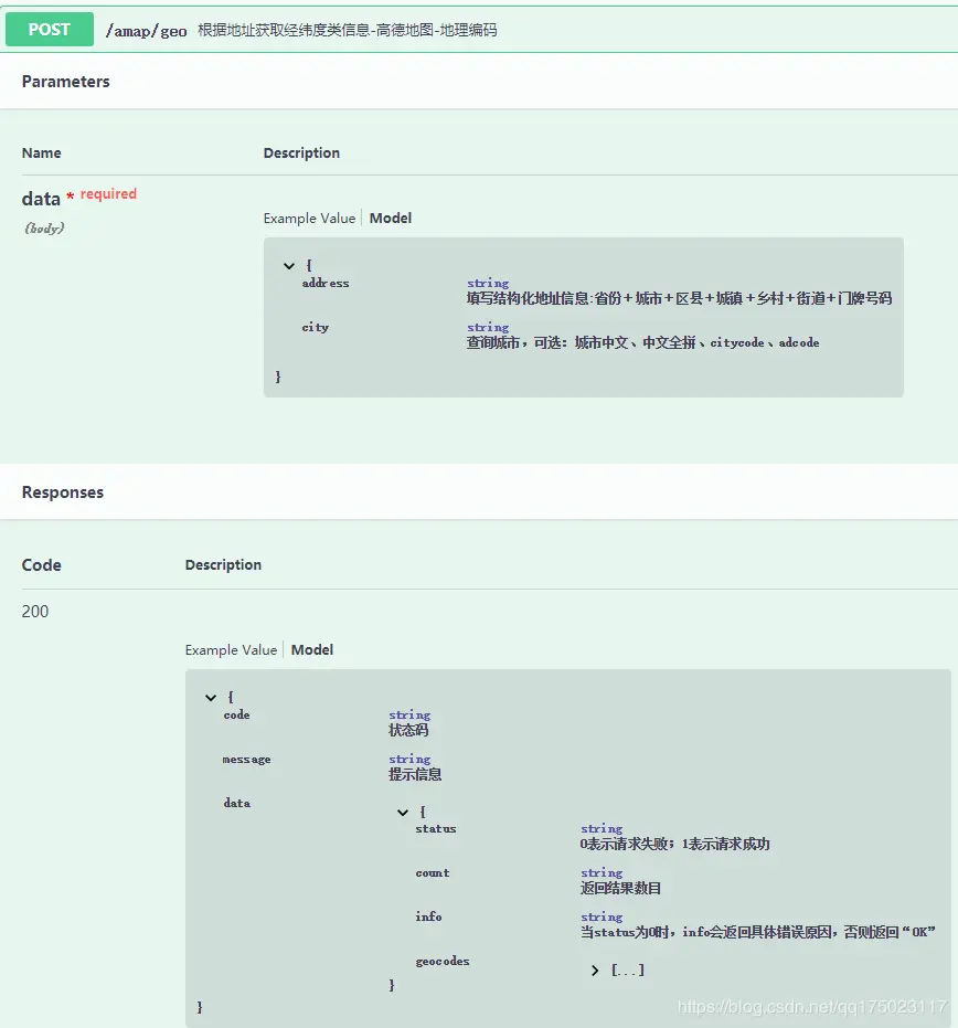 https://restapi.amap.com/v3/geocode/geo?parametersaddress 是需要获取坐标的结构化地址,output(XML)用于指定返回数据的格式,Key是用户请求数据的身份标识。
