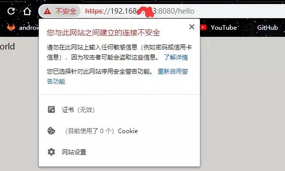#需吧生成的文件放在与配置文件相同目录下#server.ssl.key-store=classpath:keystore.p12#配置证书密码#server.ssl.key-store-password=111111 ##server.ssl.keyStoreType=PKCS12#可以手动指定端口,否则使用默认的8443端口#server.ssl.keyAlias:tomcat