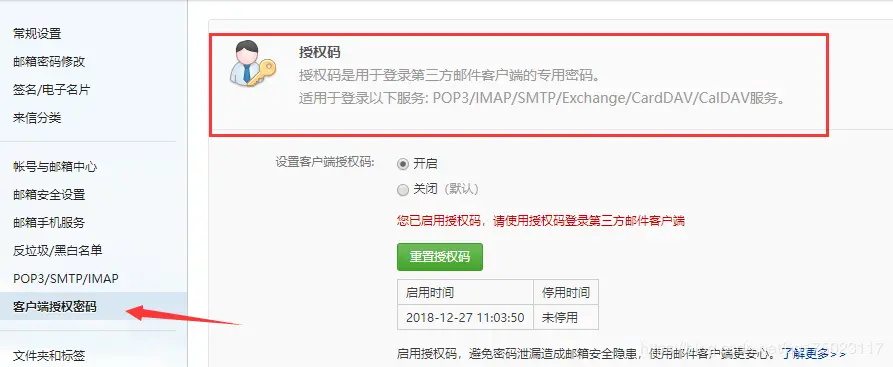 点击下面的客户端授权密码进行设置,这里我已经设置好了