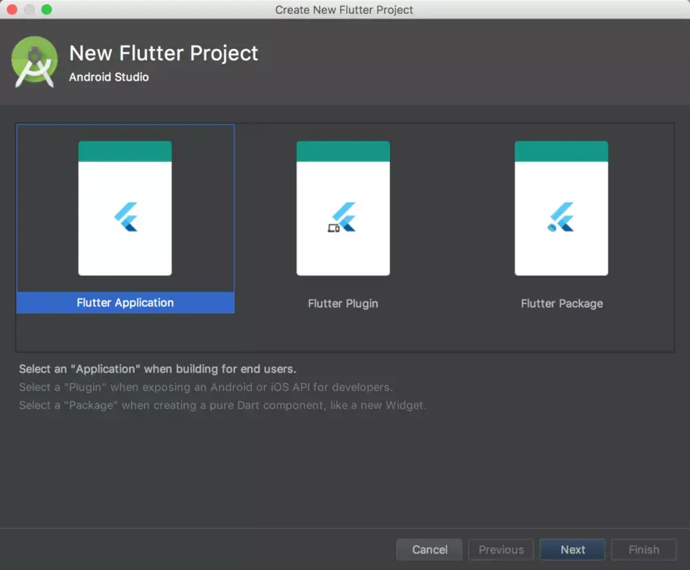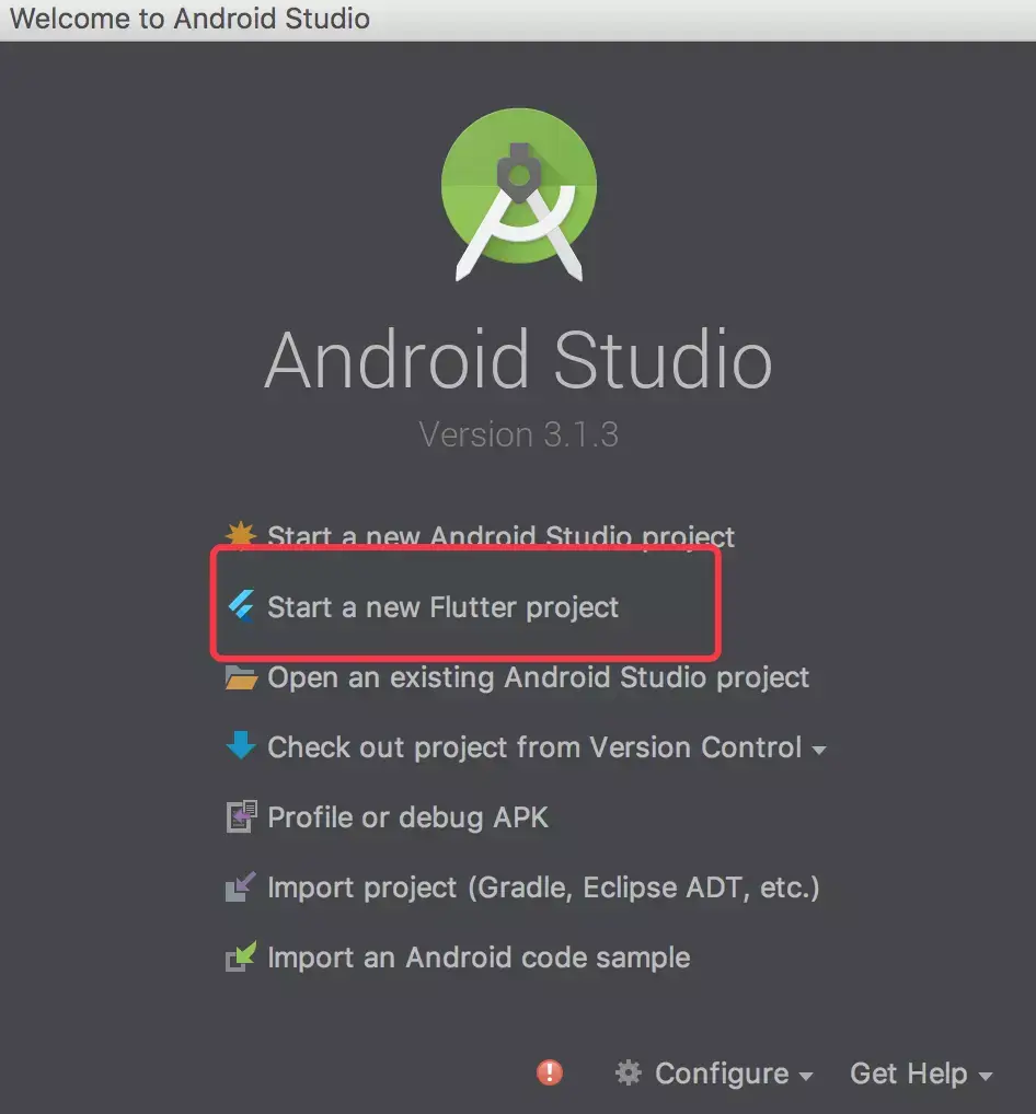 选中开始一个新的Flutter工程。