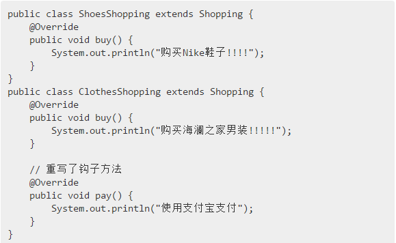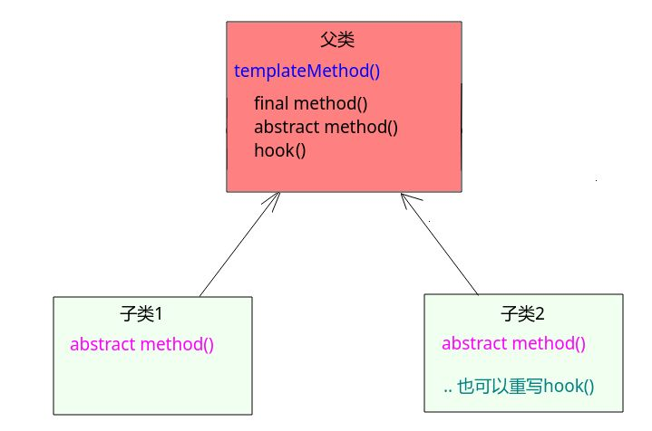 钩子方法: 父类给了默认实现,子类可以重写,也可以不重写的方法;