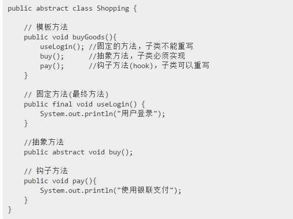 有时候为了防止恶意操作,模板方法也会加上final关键词。