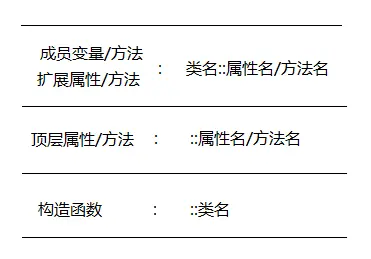成员引用由类、双冒号、成员三个部分组成: