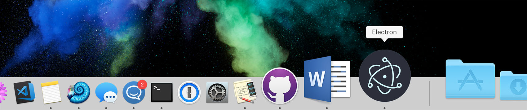 您还将在dock或任务栏中看到一个新应用程序(我们刚刚设置的Electron应用程序),如图2.4所示。它被简称为“Electron”,并使用Electron的默认应用程序图标。在后面的章节中,我们将看到如何定制这些属性,但是目前默认值已经足够好了。我们所有的代码文件都是完全空白的。因此,这个应用程序还有很多操作需要去做,但是它确实存在并正确启动。我们认为这是一场暂时的胜利。在windows上关闭应用程序的所有窗口或选择退出应用程序菜单终止进程。或者,您可以在Windows命令提示符或终端中按Control-C退出应用程序。按下Command-Period将终止macOS上的进程。