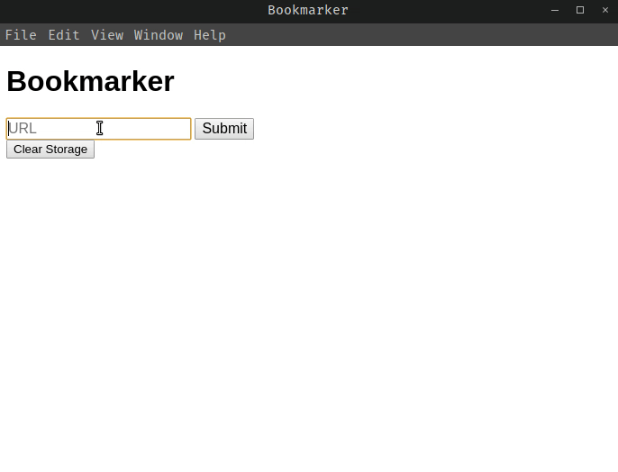 当用户希望将网站URL保存并添加到输入字段下面的列表中时,应用程序向网站发送一个请求来获取标记。成功接收到标记后,应用程序获取网站的标题,并将标题和URL添加到网站列表中,该列表存储在浏览器的localStorage中。当应用程序启动时,它从localStorage读取并恢复列表。我们添加了一个带有命令的按钮来清除localStorage,以防出现错误。因为这个简单的应用程序旨在帮助您熟悉Electron,所以我们不会执行高级操作,比如从列表中删除单个网站。