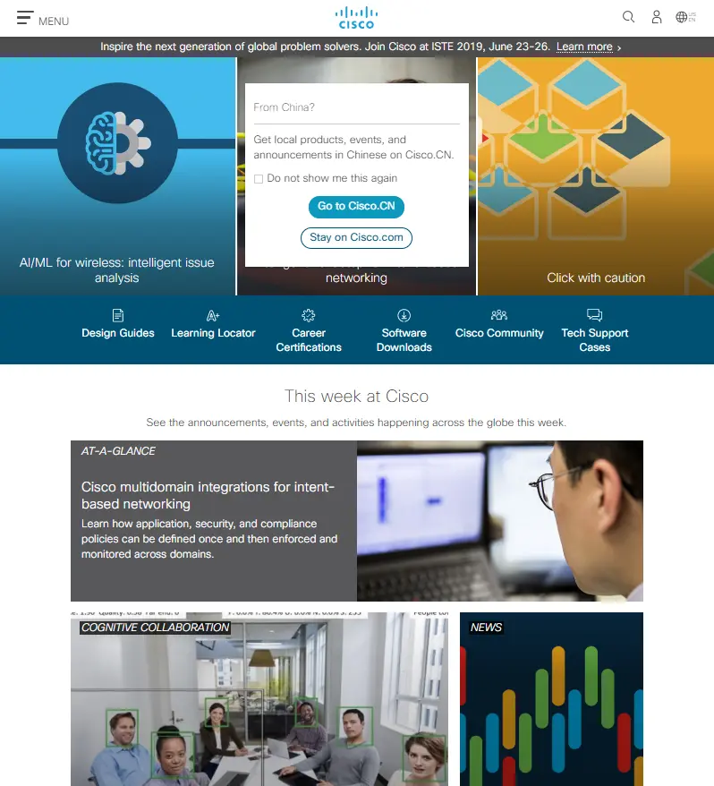 思科是一家世界500强企业,尤其在通讯领域是顶尖的存在,它是全球领先的互联网解决方案供应商,提供了企业网络、数据中心、安全协作以及物联网(loT)等解决方案。在思科的官网提供了关于交换机、路由器、无线和有线网络或其他的一些产品的产品手册、白皮书、产品简介、设计指南、解决方案等等文件。