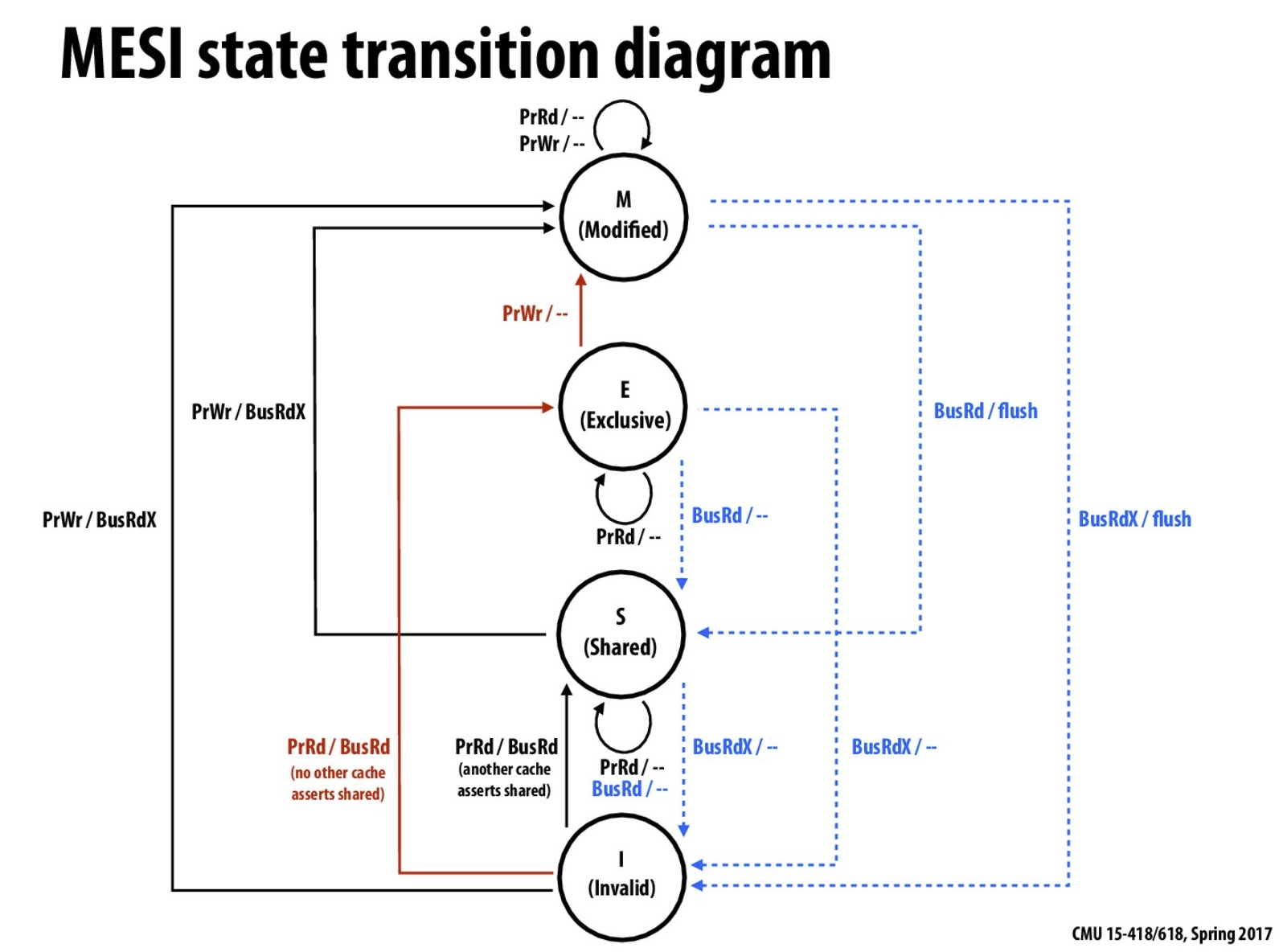 PrRd: 处理器请求读取一个 Cache block PrWr: 处理器请求写入一个 Cache block