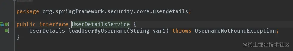 这个过滤器里的userDetailsService,是Spring Security加载UserDetails的一个接口,代码如下:
