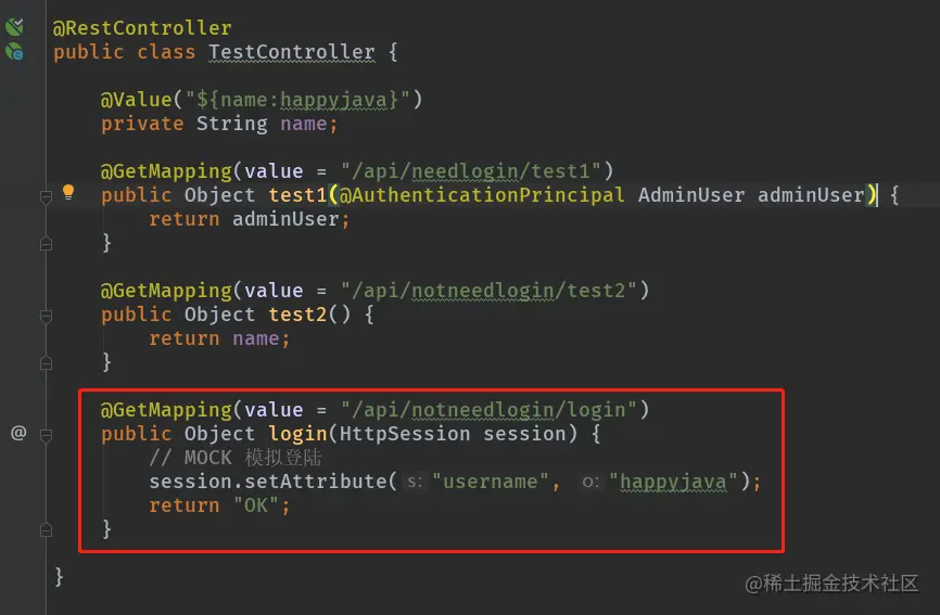 增加了一个登陆接口,模拟真实用户登陆。其中,needLogin接口,使用了AuthenticationPrincipal注解来获取Spring Security中上下文的用户(这个实在Filter里面设置的)。