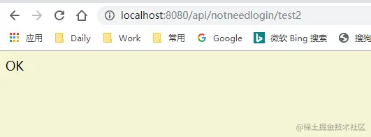 通过antMatchers("url").permitAll()方法,配置了/api/notneedlogin/**路径会被Spring Security放行。