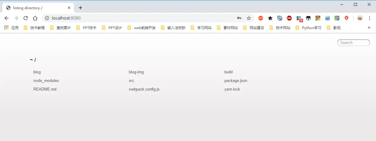 现在再次开启开发服务器,就可以通过 http://localhost:3000 访问到项目的 build 目录了,默认寻找该目录下的 index.html 文件进行渲染,如果没有则展示该目录下的所有文件。