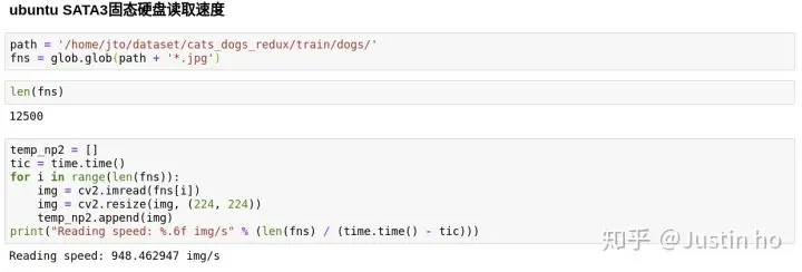 在深度学习模型进行训练前,往往需要从本地硬盘读取数据到内存,并做一些预处理,硬盘读取速度会极大影响训练的效率。如果读取速度快,送进GPU的数据多,GPU的利用率就越高。当然提高数据传送效率除了有硬件的部分也有软件的部分,我们先来讨论硬件方面的影响。而目前市售硬盘有机械硬盘和固态硬盘两种,固态硬盘根据接口分为sata、M.2 NVME、PCIe三种。笔者个人电脑上有两种硬盘,分别是希捷酷鱼2T机械硬盘和三星860evo 500GB固态硬盘,我们使用kaggle著名数据集dogs_cats_redux,从两个硬盘中分别测试数据读取的速度。