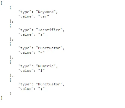 第一步:词法分析,也叫做扫描scanner。它读取我们的代码,然后把它们按照预定的规则合并成一个个的标识Tokens(type 和 value )。这个阶段,它会移除空白符,注释等。最后,整个代码将被分割进一个Tokens列表(一个一维数组)。