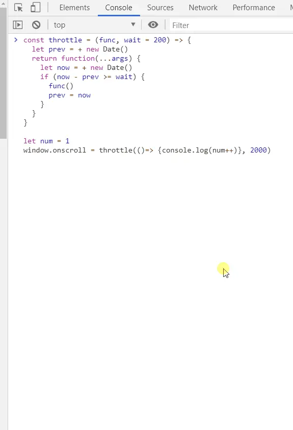 window.onscroll = throttle(()=> {console.log(num++)}, 2000)