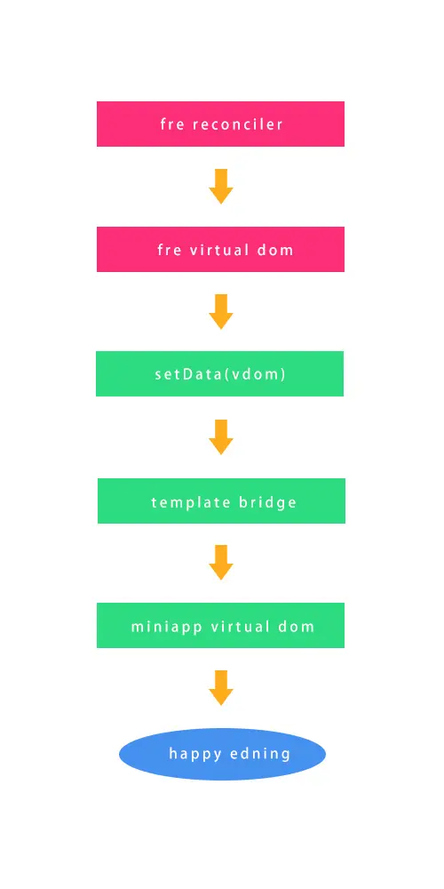 所以最终 fard 的方案,就和 RN 类似,在小程序端跑 fre reconciler 过程,跑完再通过某个【桥】反馈给小程序视图