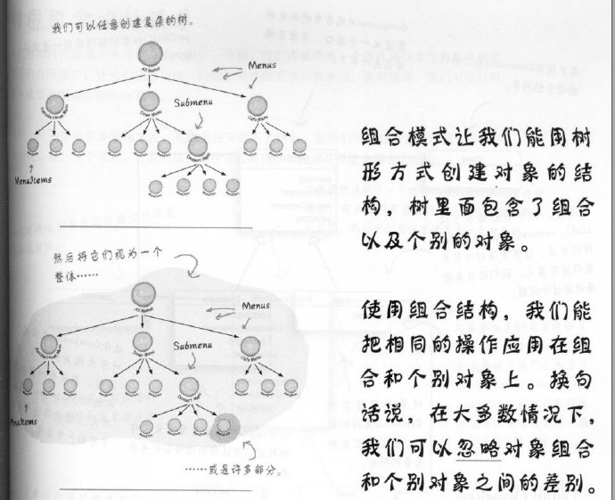 因为它既可以包含其他菜单,也可以包含菜单项。个别对象只是菜单项--并未持有其他对象。就像你将看到,使用一个遵照组合模式的设计,让我们能够写出简单的代码,就能够对整个菜单结构应用相同的操作。