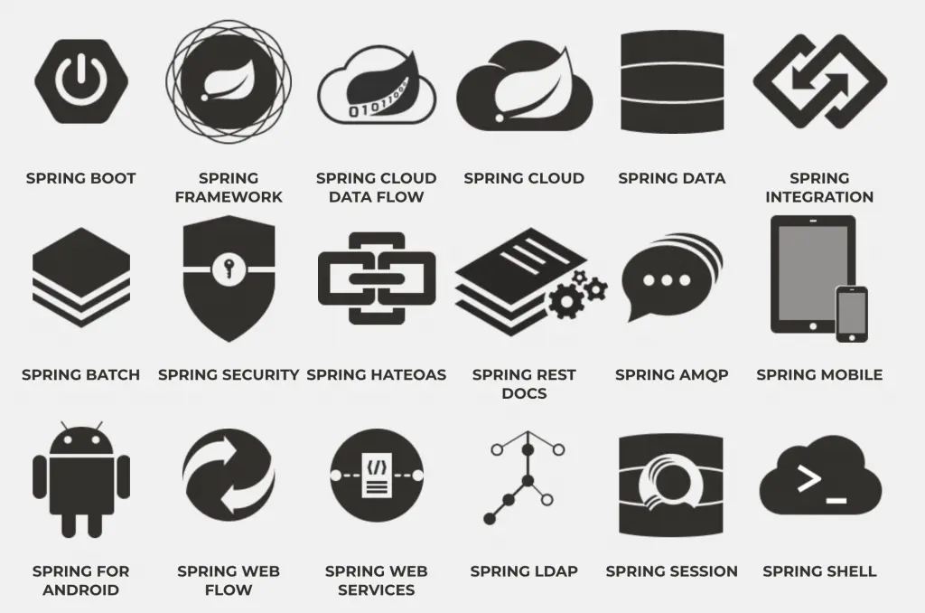 除了上面提到的四个项目,Spring家族还有很多项目被广泛应用: