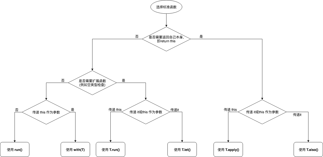 在这些作用域中它们都会存在一个返回值。在上面的讲述的run,with,T.run,T.let中它们返回的都是作用域中最后一个对象。当然它们所返回的值是允许和接受者it或者this对象的类型不同。