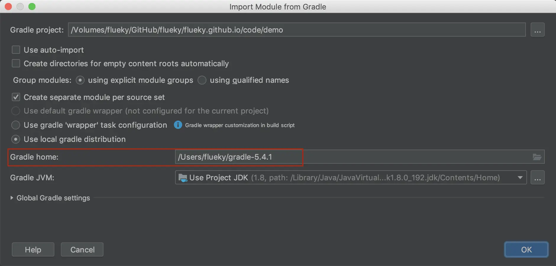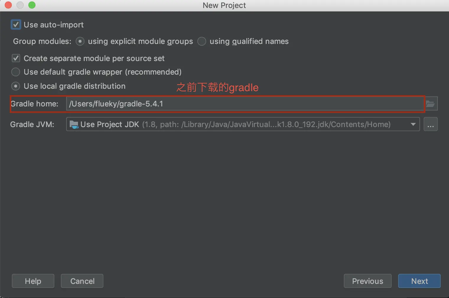 点击 Import Gradle Projet 出现下图配置页面,建议按照标记处指定 gradle 版本。