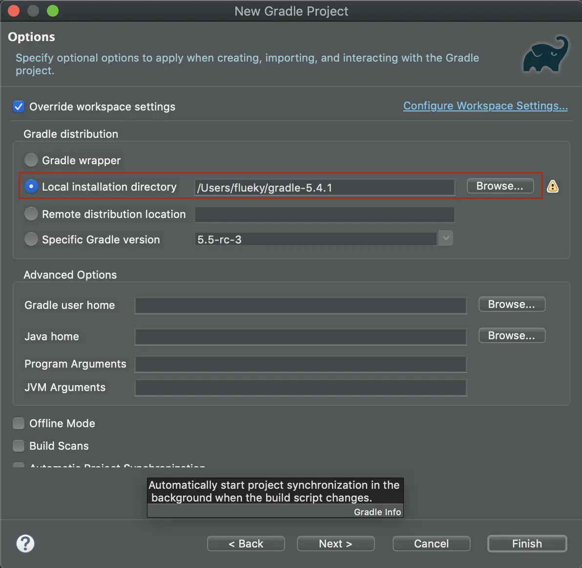 指定 gradle 配置。