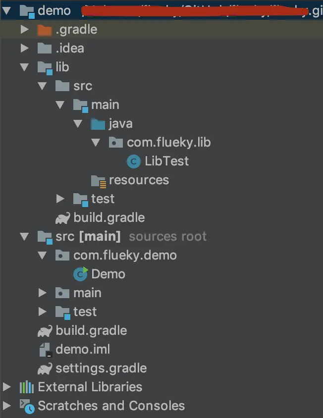 图中,demo 和 test 都是一个独立的工程,因此都有 settings.gradle 文件和 build.gradle 文件。打算使 demo 依赖 test,需要在 demo 中的 settings.gradle 文件中添加下面的配置。