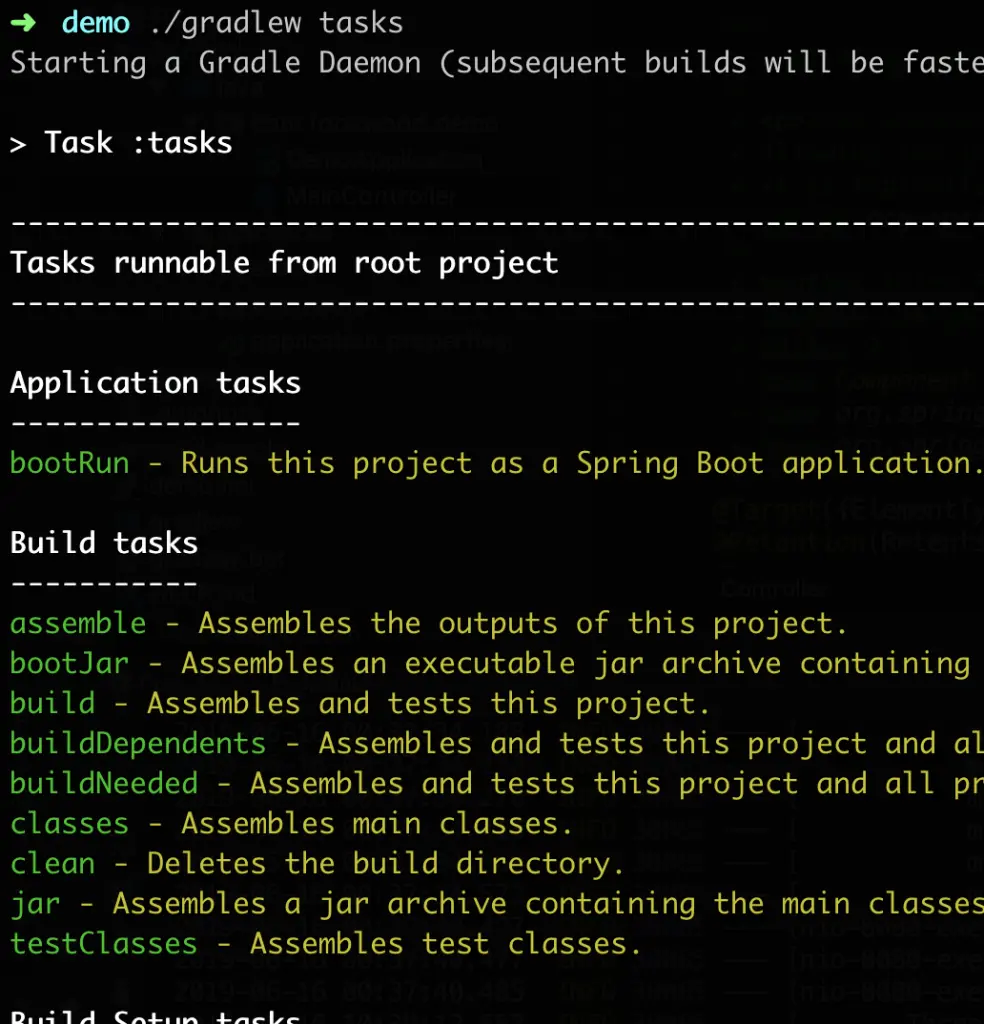 ./gradlew tasks 或者 gradle tasks 都可以查看可以执行的任务,其中bootRun是启动Spring Boot项目的任务,你可以通过以下方式启动: