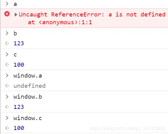 b未经声明就赋值,注意上面说的是任何变量,未经声明就赋值,即为全局对象所有,也就是不需要考虑它是在哪里赋值的,反之 a 是在函数内声明赋值的,因此它的作用域就是函数内部,在外面访问不了,于是输出undefined,而 c本身就是在全局下声明 的,自然为全局对象所有。好,前面的理解了,接下来看到预编译