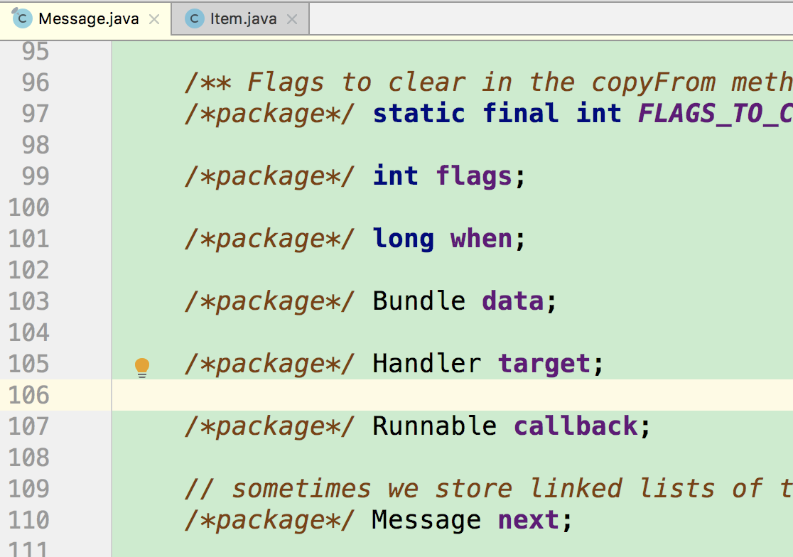 重点就这么几行,在这个for循环中不断的取消息,然后通过dispatchMessage(handler中的)方法将消息发送到相应回调中。之所以是handler中的方法,是因为Message中的变量