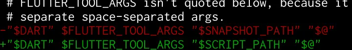 另外如果想让${FLUTTER_ROOT}/packages/flutter_tools/lib里更改的内容实时生效, 将${FLUTTER_ROOT}/bin/flutter中引用的$SNAPSHOT_PATH改成$SCRIPT_PATH就可以实时查看dart脚本怎样同步工程, 怎样诊断环境等等所有事情: