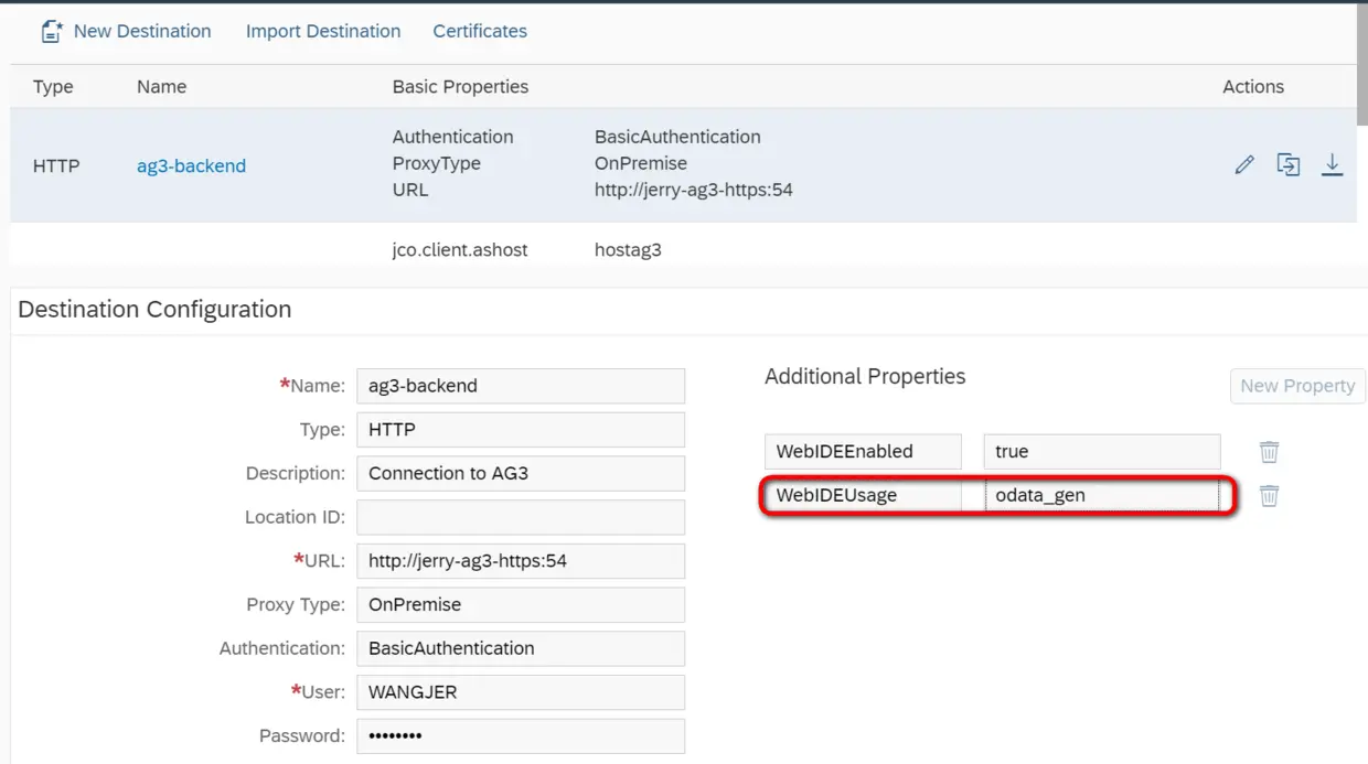 今天工作发现,SAP Cloud Platform上创建Destination维护的WebIDEUsage属性很有讲究: