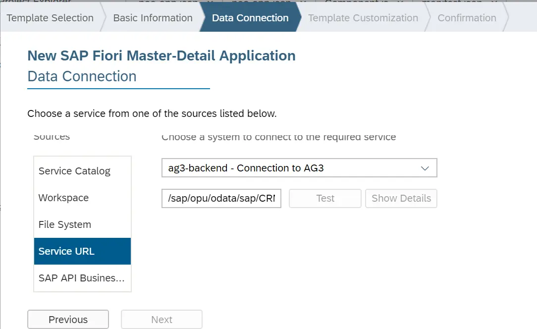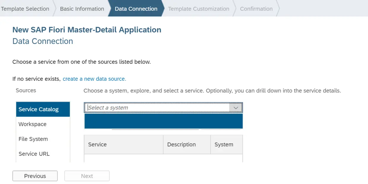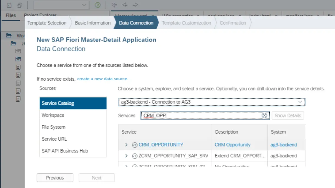 根据标准文档描述,拥有odata_abap属性的Destination指向的是一个gateway系统,将在SAP webIDE创建UI5应用的向导中的service catalog界面出现,如下图所示: