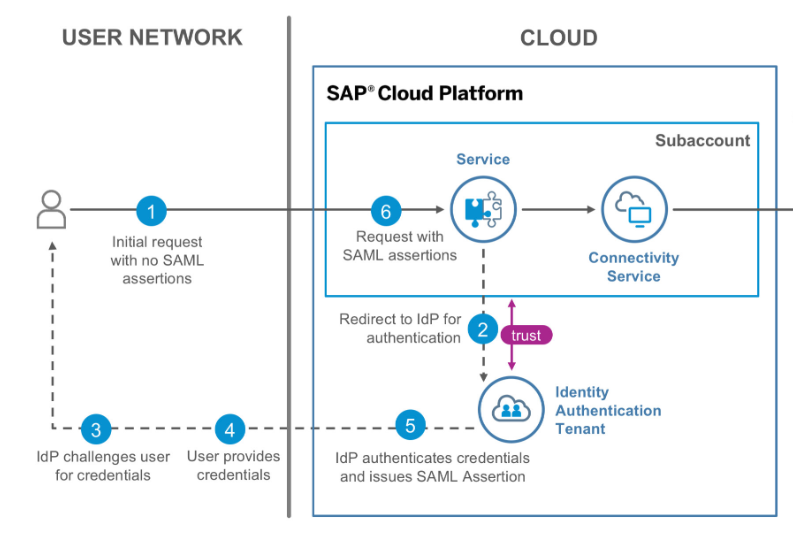 上图介绍了用户访问SAP云平台时经历的Authentication过程。 本文使用的例子是用户访问SAP Marketing Cloud而非SAP云平台,但是原理一致。