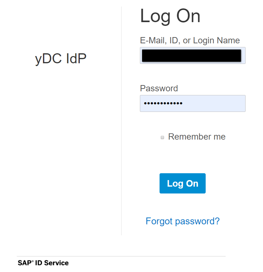 被重定向到SAP云平台的account ID service(accounts.sap.com): accounts.sap.com/saml2/idp/s…