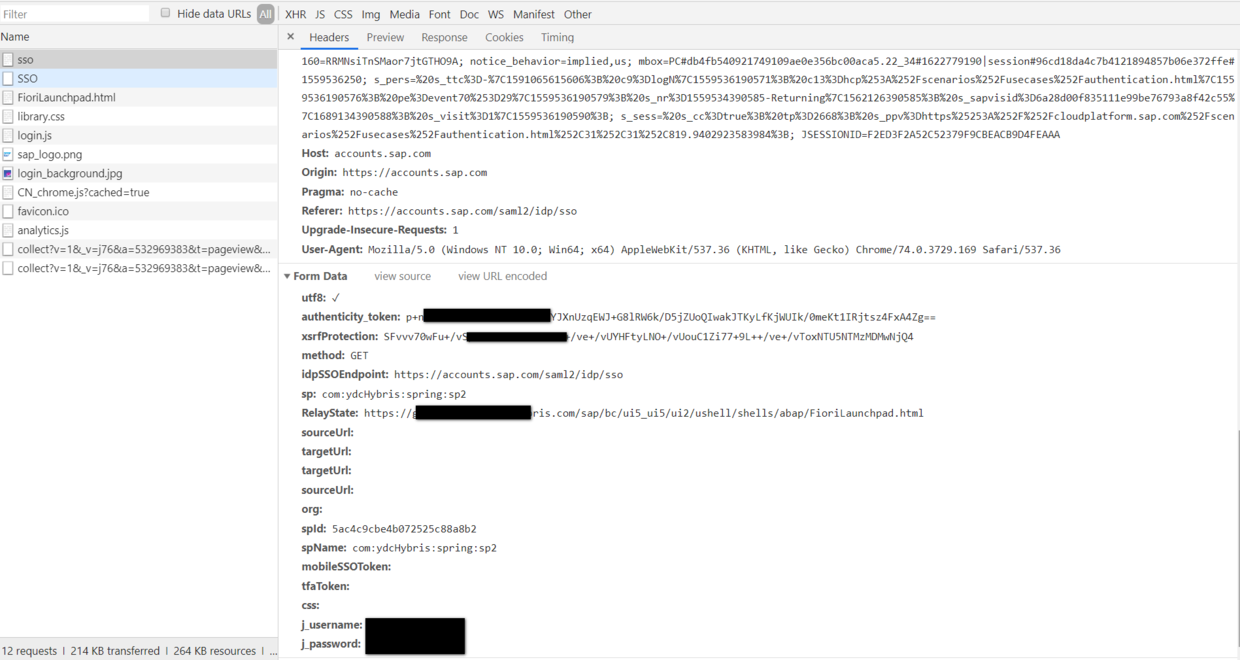 步骤4:用户输入用户名和密码后,点击login按钮,这些信息通过HTML form发送到了SAP ID service的服务器端: