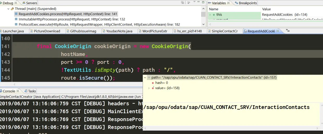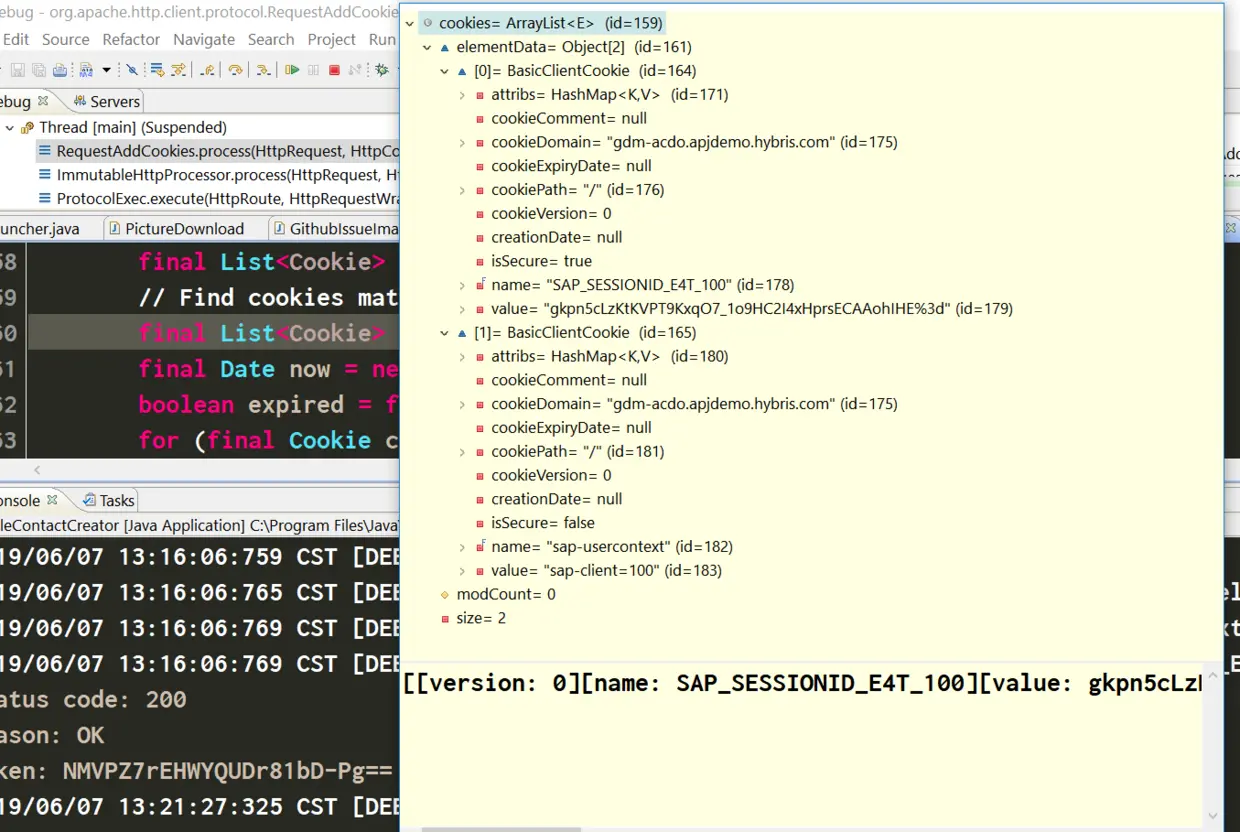通常情况下,第一次请求完毕后,服务器都会给客户端返回一些cookie字段,在第二次请求时,如果使用的是postman测试工具或者apache的HttpClient这个库,cookie字段都会自动被附加在第二次请求的HTTP头部。详情可以参考我写的另一篇博客:OData service parallel performance measurement – how to deal with XSRF token in Java Program and JMeter blogs.sap.com/2017/08/28/…
