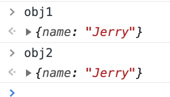 结果我们发现obj1和obj2之中都有一个name属性叫Jerry,造成这个问题的原因上面说了,但是文字看上去不是很好理解,所以我们来搞个图片理解一下