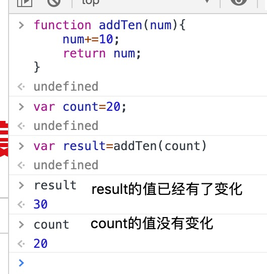 函数的参数都是按值来传递的(废话),简单的传参方式我们之前的章节有所提到过。把函数体外部的值赋值给函数体内部就像把变量从一个赋值到另一个一样
