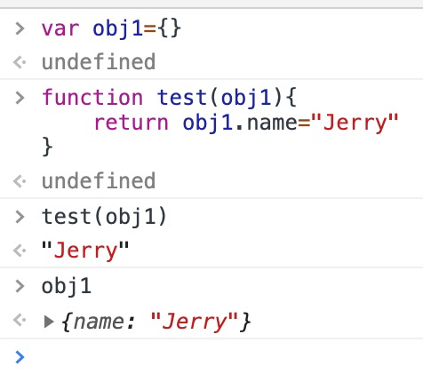 外部的obj1传递到函数内部之后,函数吧obj1的属性新增了一个name,外部的obj1也会多一个属性叫做name