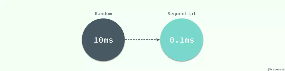 10ms 的时间在计算领域其实是一个非常巨大的成本,假设我们使用脚本向装了 SSD 的磁盘上顺序写入字节,那么在 10ms 内可以写入大概 3MB 左右的内容,但是数据库程序在 10ms 之内只能将一页的数据加载到数据库缓冲池中,从这里可以看出随机读取的代价是巨大的。