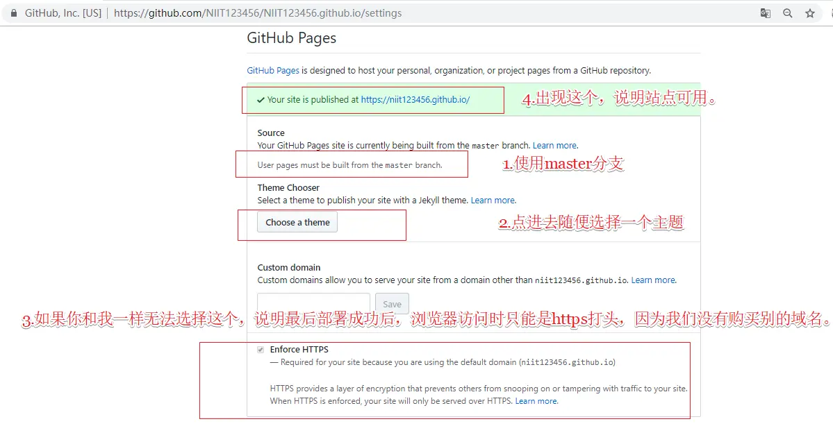 然后在浏览器中输入niit123456.github.io/就可以访问啦,把我的niit123456改成你的github的账户名就行了