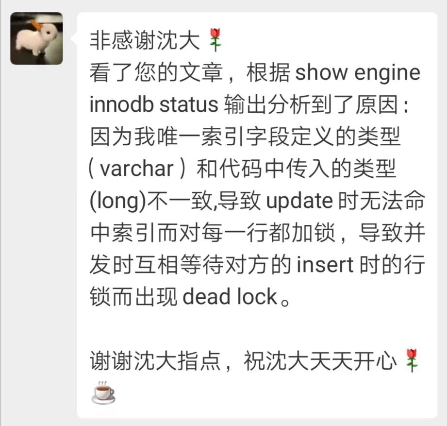 画外音:前文《超赞,InnoDB调试死锁的方法!》就详细分享过,InnoDB死锁的分析实践。
