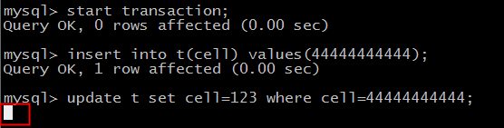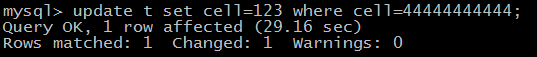 update t set cell=123 where cell=44444444444; [3]